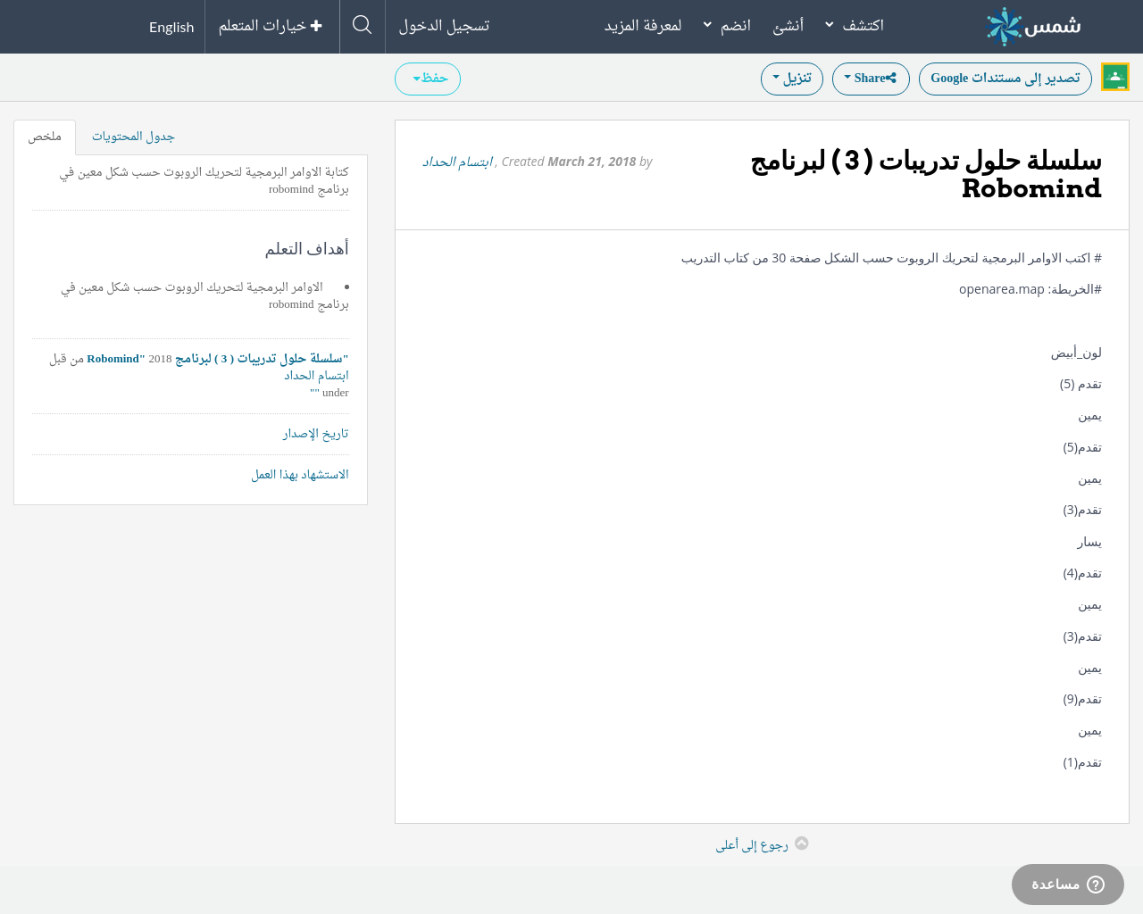 سلسلة حلول تدريبات 3 لبرنامج Robomind Shms Saudi Oer Network