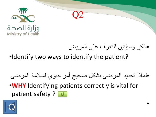 1 تحديد هوية المريض يجب استخدام طريقتين المعهد العربي للتنمية المهنية المستدامة معتمد Facebook