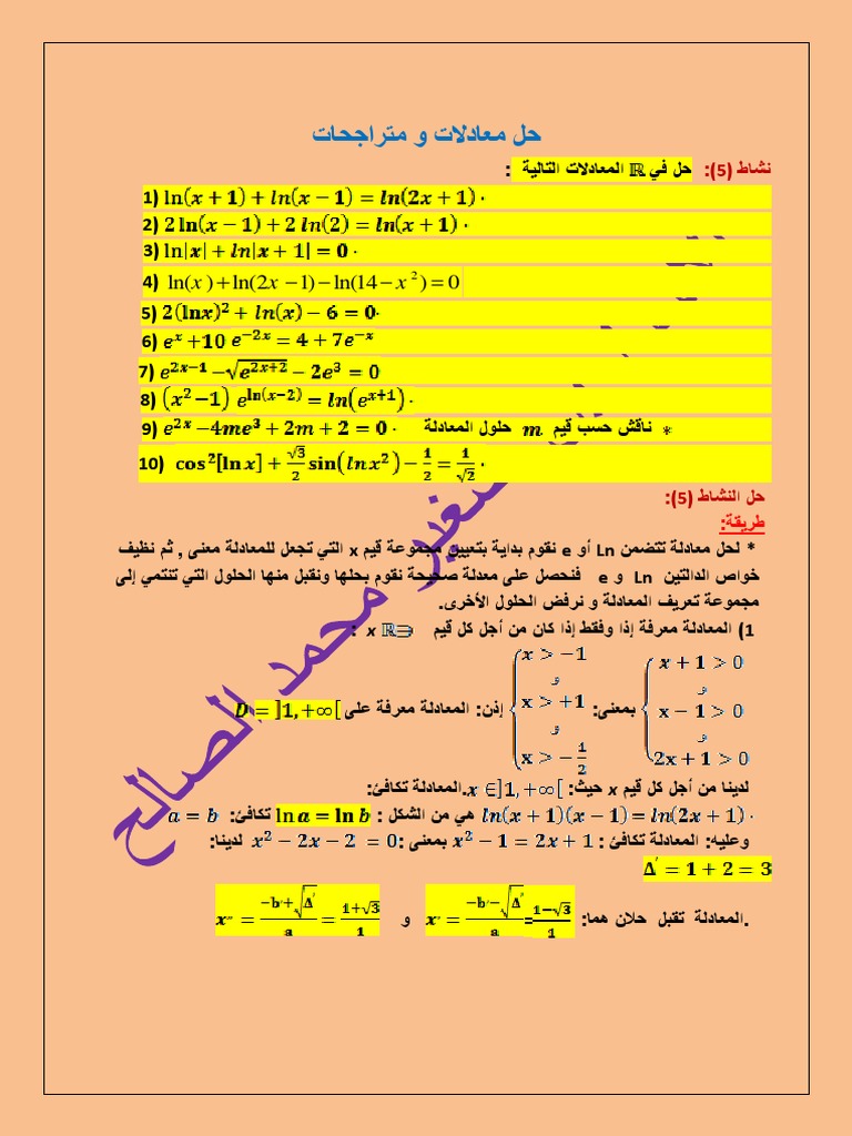 معادلات ومتراجحات أسية و لوغاريتمية