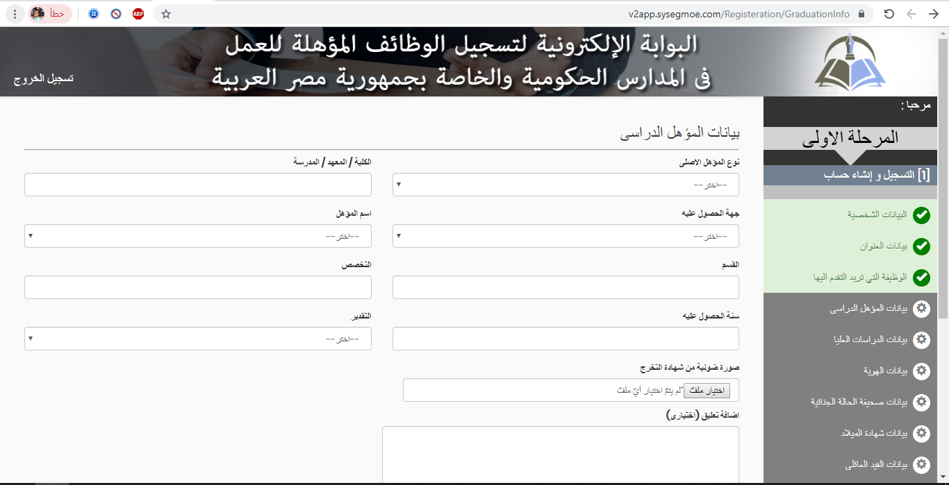 عاجل اللينك الخاص بالبوابة الإلكترونية لتسجيل الوظائف المؤهلة للعمل بالمدارس وموعد التسجيل