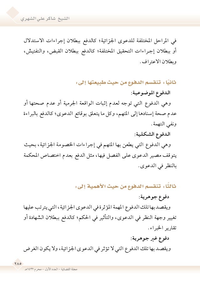 الدفوع الشكلية والموضوعية والدفع بعدم المشعل القانوني سليمان السقلي Facebook