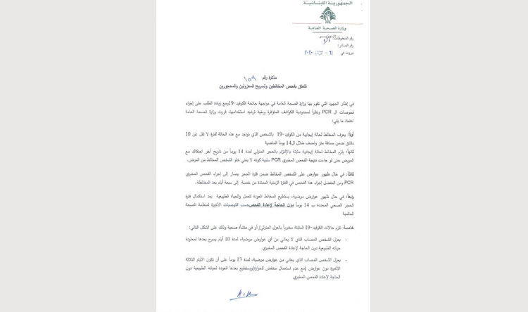 بالصور مذكرة من وزير الصحة حول فحص المخالطين Lebanese Forces Official Website