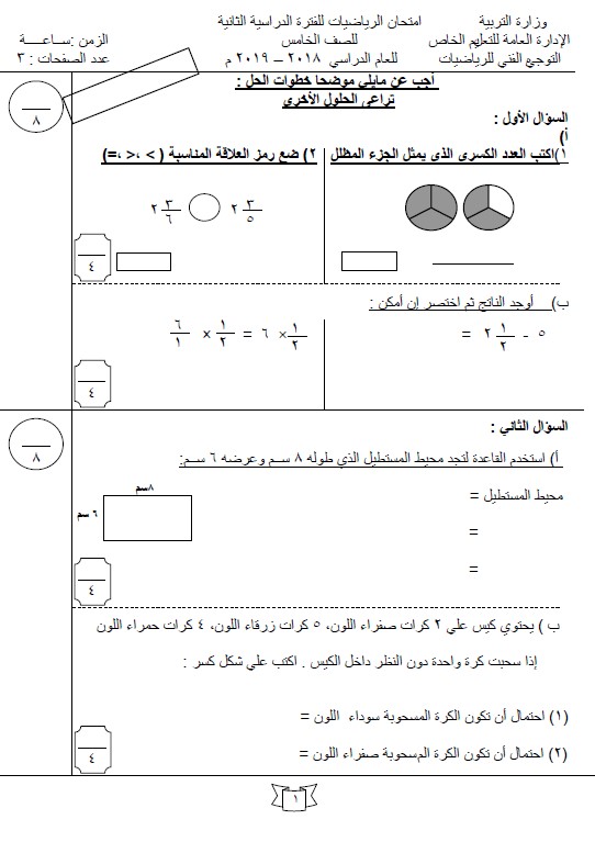 مذكرة رياضيات الصف الخامس الفصل الثاني الأستاذ محمد منصور مدرستي الكويتية