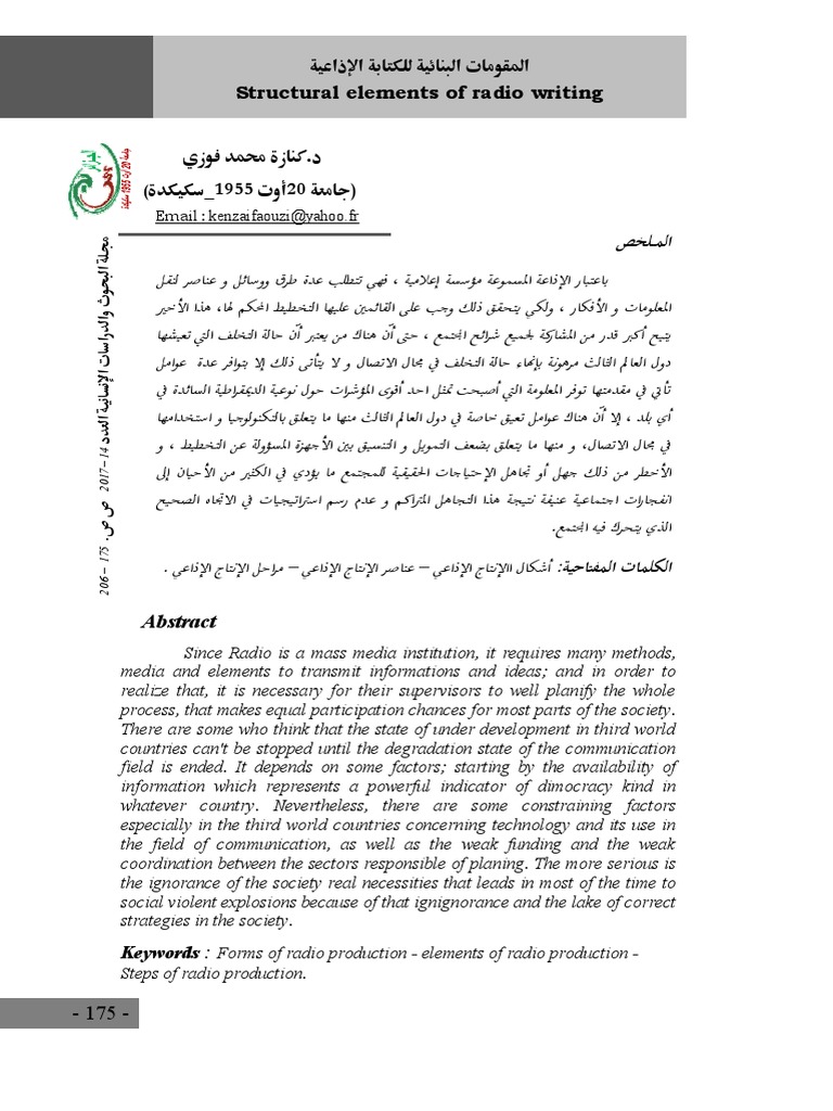 Structural Elements Of Radio Writing Email Kenzaifaouzi Yahoo Fr Technology Engineering Communication