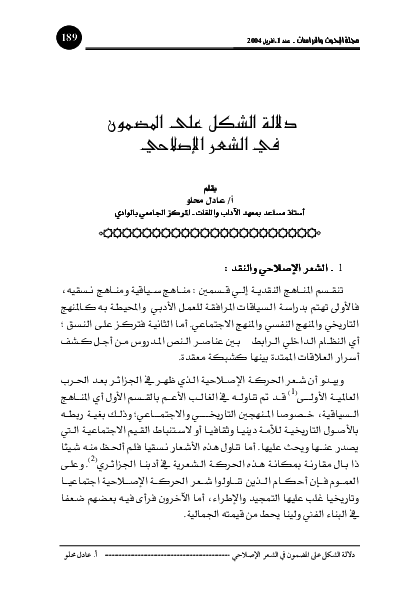 Pdf دلالة الشكل على المضمون في الشعر الإصلاحي الجزائري Mehellou Adel Academia Edu