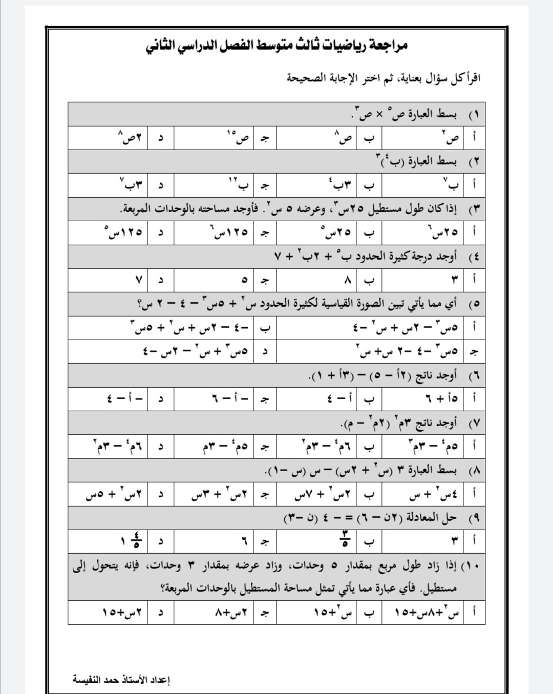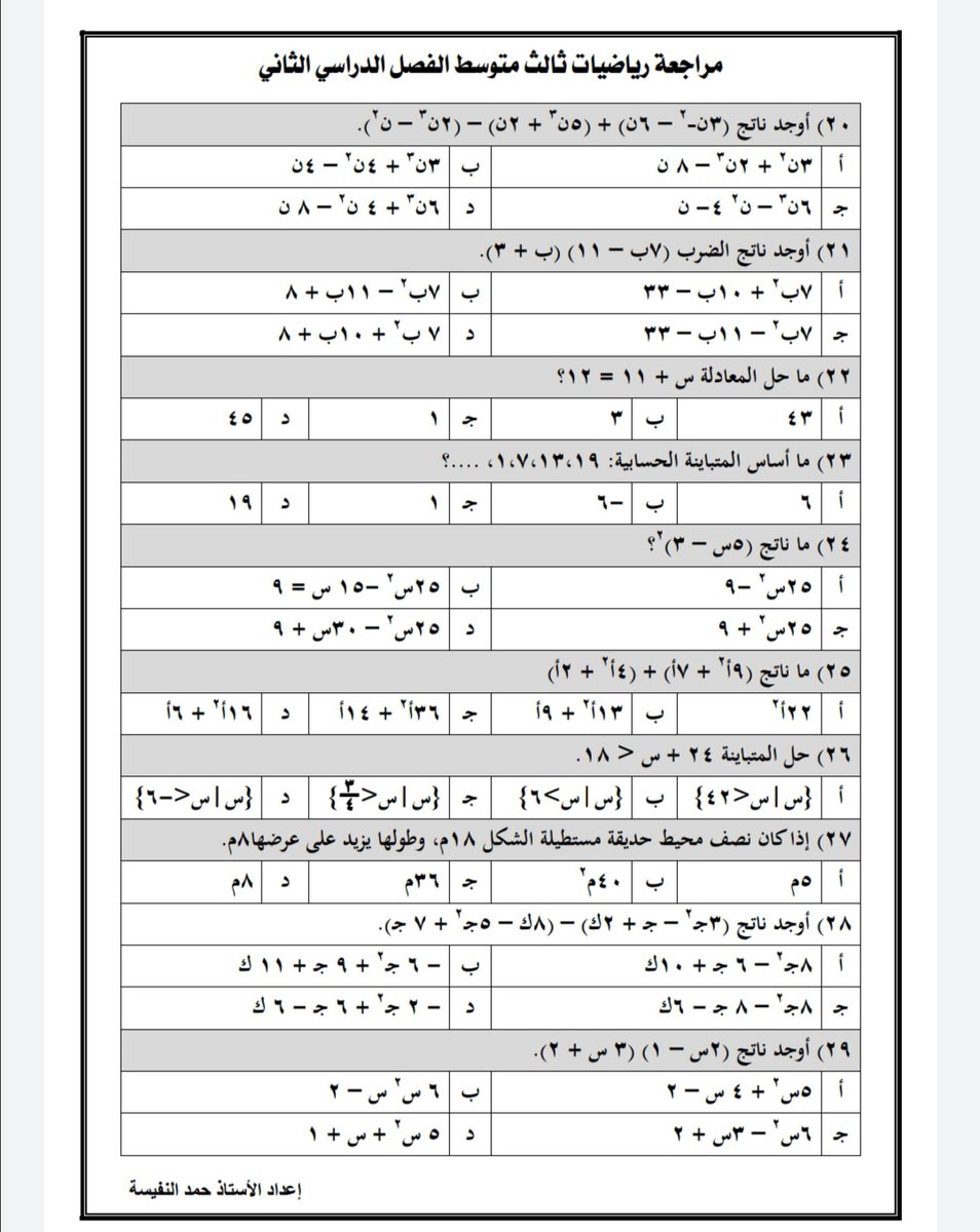 حمد النفيسة On Twitter مراجعة رياضيات ثالث متوسط الفصل الدراسي الثاني على شكل أسئلة خيار من متعدد غدا إن شاء الله مراجعة رياضيات ٢ أول ثانوي Https T Co Kop9tl3hzb