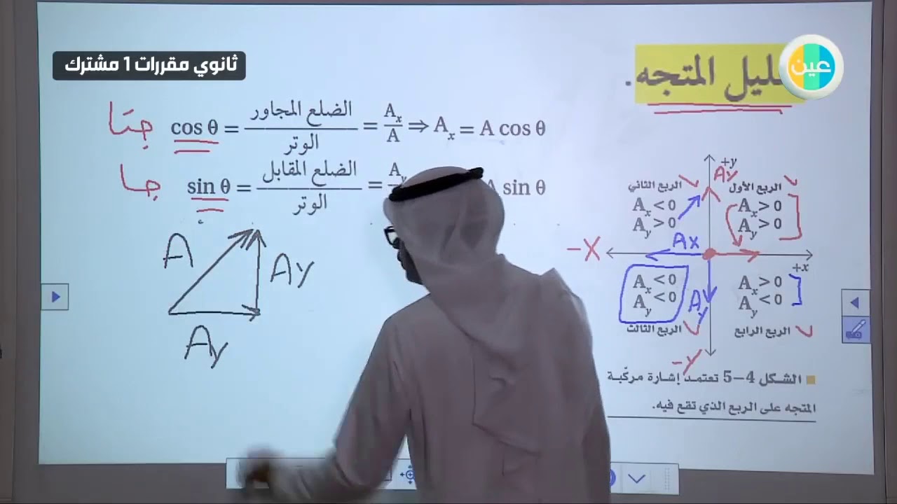 دروس عين مركبات المتجهات الفيزياء 1 مقررات أول ثانوي مشترك 1 Youtube