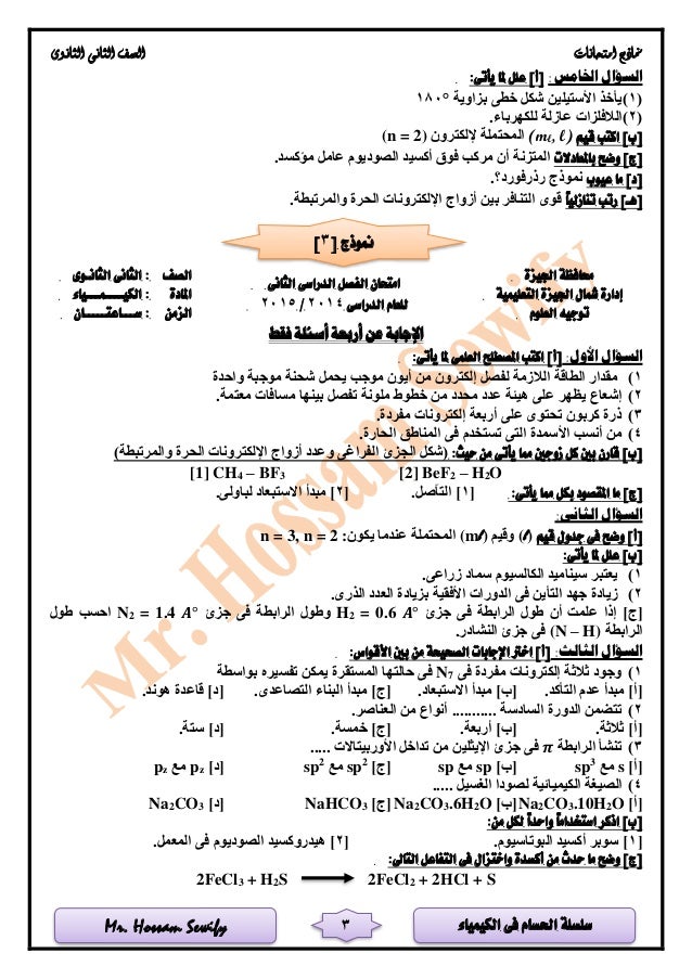نموذج امتحان كيمياء ١٢ مع الاجابة طلابي صفحة الكيمياء مع الاستاذ خليل عرمان Facebook