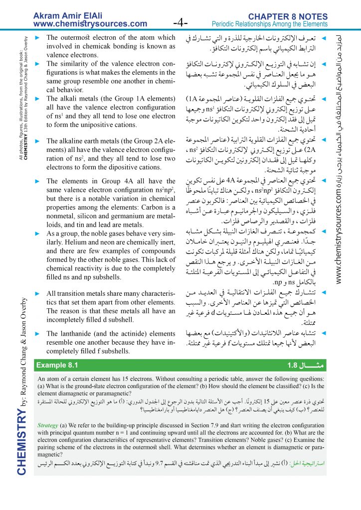 ملخص الفصل الثامن من كتاب الكيمياء تشانج و أوفربي Chapter 8 Notes Chemistry Chang Overby مصادر الكيمياء