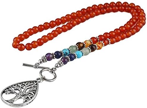 قلادة نوبويي على شكل شجرة الحياة للجنسين 7 قلادة شقرا Mala حجر علاج سوار يوغا التأمل الصلاة Alloy كارنيليان Amazon Ae
