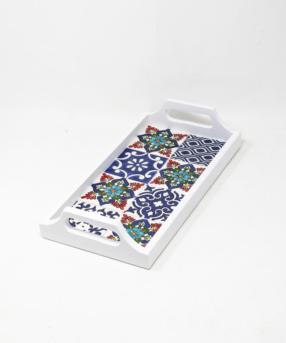 صينية تقديم على شكل مستطيل باللون الأبيض