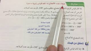 رياضيات اول ثانوي 2017 ايجاد عدد اضلاع المضلع اذا علم قياس زاوية داخلية ص15 Youtube