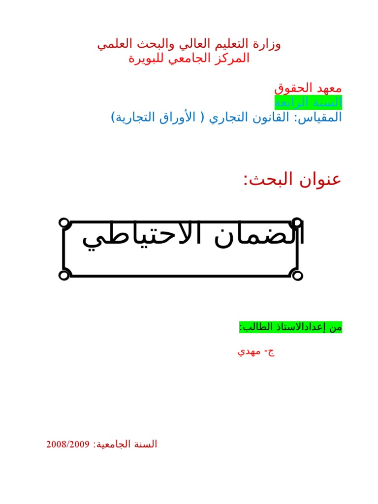 مذكرة ماستر الضمان الاحتياطي في السفتجة Pdf