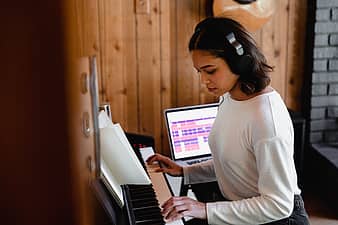 موسيقى بيانو نساء في الداخل الإناث اشخاص بالغ شخص واحد الشباب مفتاح البيانو تلعب Anyrgb