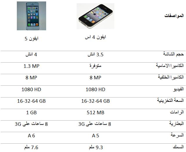 ارقام ديجيتال مقارنة بين جهاز ايفون 5 الجديد وجهاز ايفون 4s