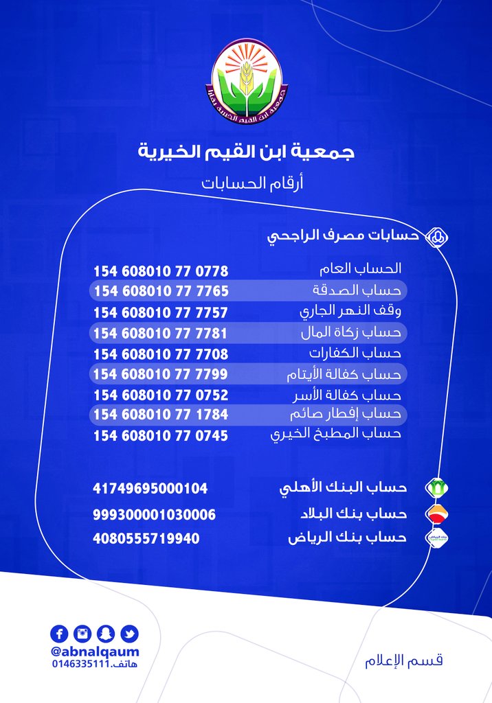 جمعية ابن القيم On Twitter حسابات جمعية ابن القيم الخيرية البنكية