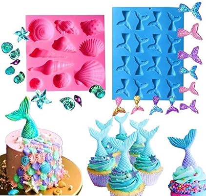 مجموعة من 2 سلسلة عروس البحر قالبن البحر ذيل العفن سيليكون فندان لتزيين الكعك الشوكولاته حلوى قالب صابون الخبز أداة قالب كب كيك أعلى صينية الثلج Amazon Ae