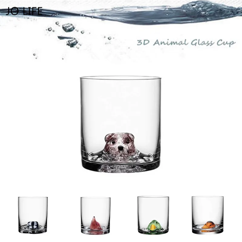 كأس زجاجي من Jo Life بتصميم إبداعي على شكل حيوانات كرتونية ثلاثي الأبعاد الدب البط الطيور الغرير الثعلب كوب ويسكي على شكل لبار المنزل في شفافة من المنزل والحديقة على Store Unohama Club Store