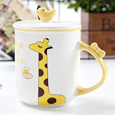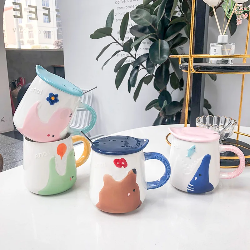 كوب خزفي على شكل حيوان مجسم مع غطاء ملعقة لبانة كوب شاي مجموعة من حليب الفطور من Hmkzxq Amazon Ae