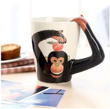 كوب مزخرف بمقبض على شكل حيوان ثلاثي الأبعاد 12 أونصة فنجان قهوة من السيراميك كوب رائع بتصميم فريد للأطفال على شكل حيوانات وغوريلا على شكل فيل وحشي وبقرة