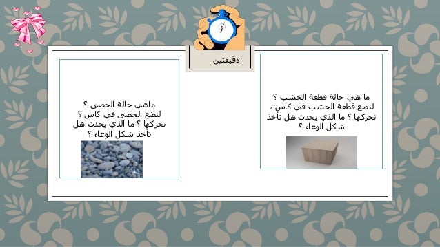لماذا ياخذ الماء شكل الوعاء اسالنا