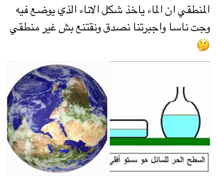 الارض مسطحة Auf Twitter هههه هذي فيزياء الماء والسوائل تقول الماء ياخذ شكل الوعاء الدي يوضع فيه وانت بجهلك تكذب الفيزياء وتقول الماء ينحني ويلتصق بكرة فمن الجاهل Https T Co Fpa6dunkmv