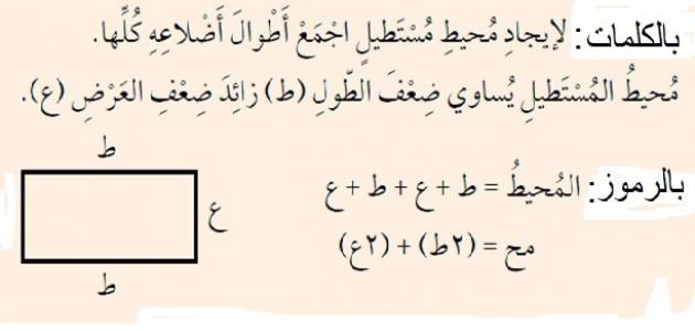 قوانين المساحة و المحيط للأشكال الهندسية رياض الجنة