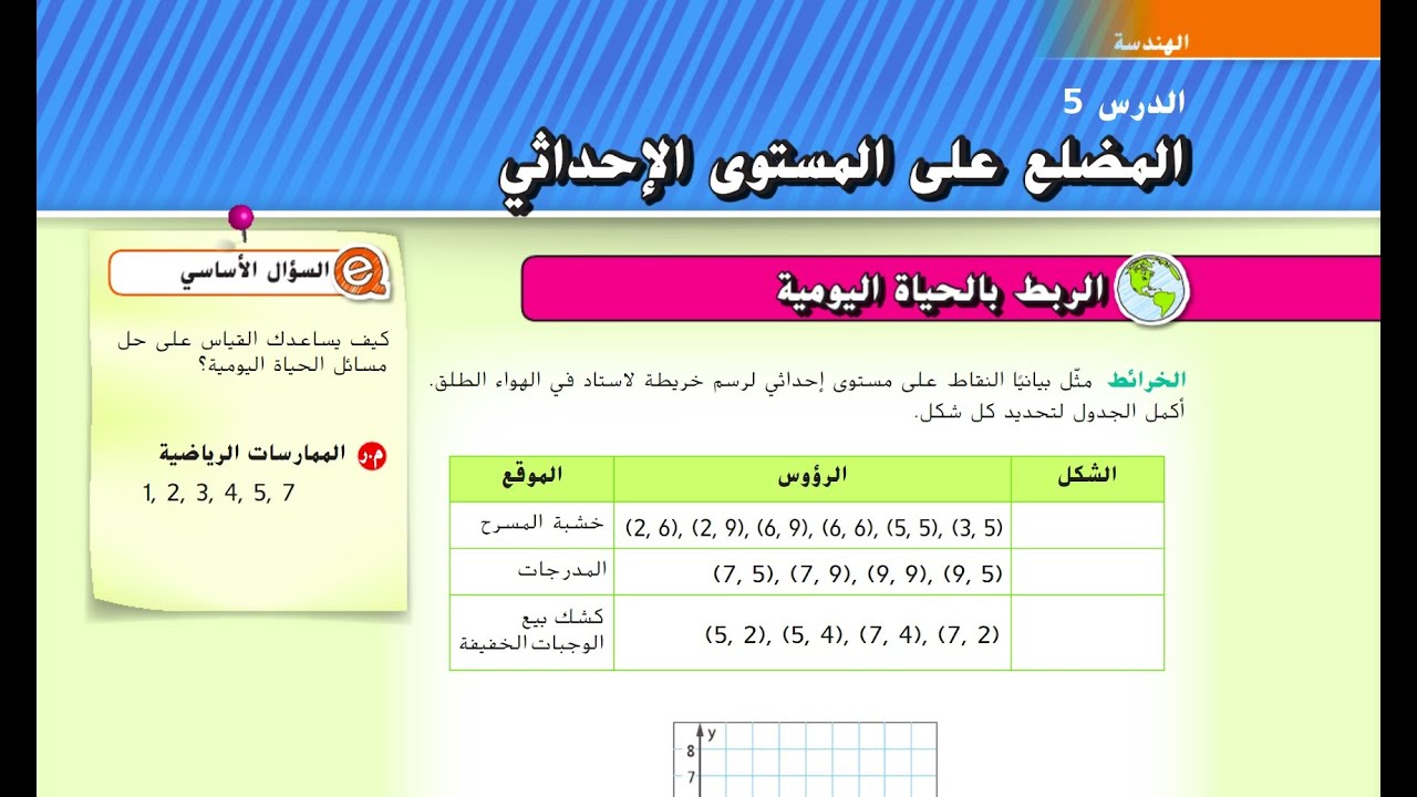 حل درس المضلع على المستوى الإحداثي رياضيات صف سادس فصل ثالث مدرستي الامارتية