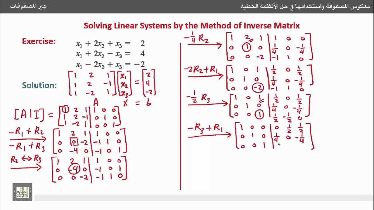 جبر المصفوفات حل نظام خطي في ثلاثة مجاهيل باستخدام معكوس المصفوفة Youtube