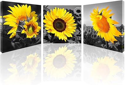 لوحة فنية جدارية مطبوعة على شكل زهرة عباد الشمس لتزيين المطبخ وصور غروب الشمس مطبوعة فنية جدارية ممددة من القماش لديكورات المعيشة 12 X12 X3pcs Amazon Ae