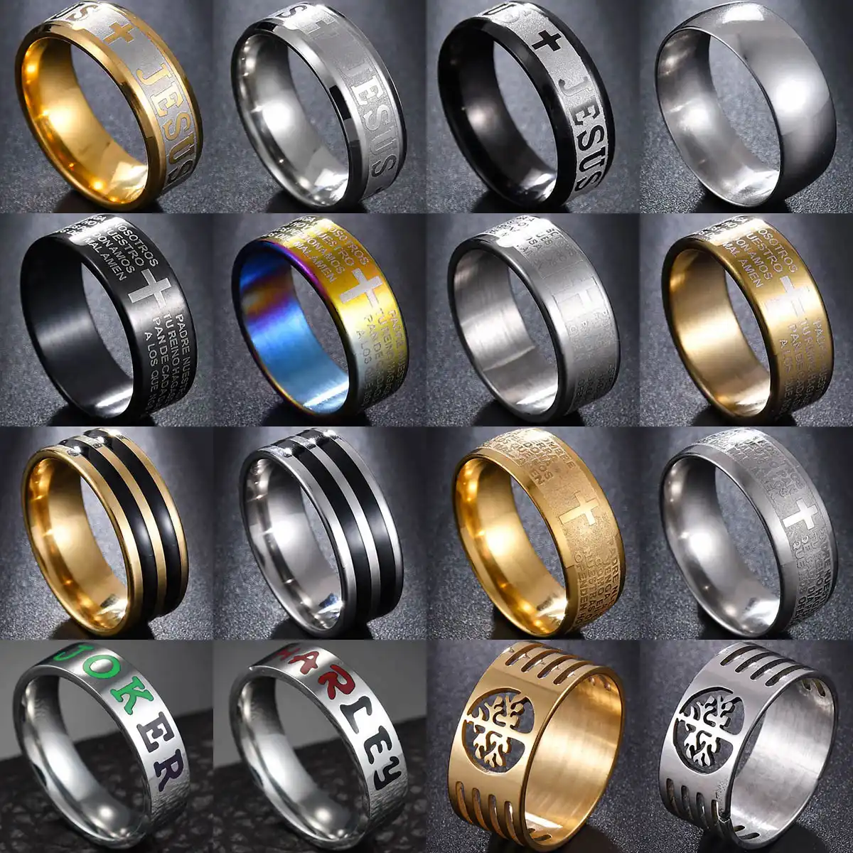 4 ألوان X 3 أنماط التيتانيوم الصلب الإنجليزية رسالة الرب الصلاة الدائري الصفاء الرجال الكتاب المقدس الصليب خواتم للنساء يسوع مجوهرات Aliexpress