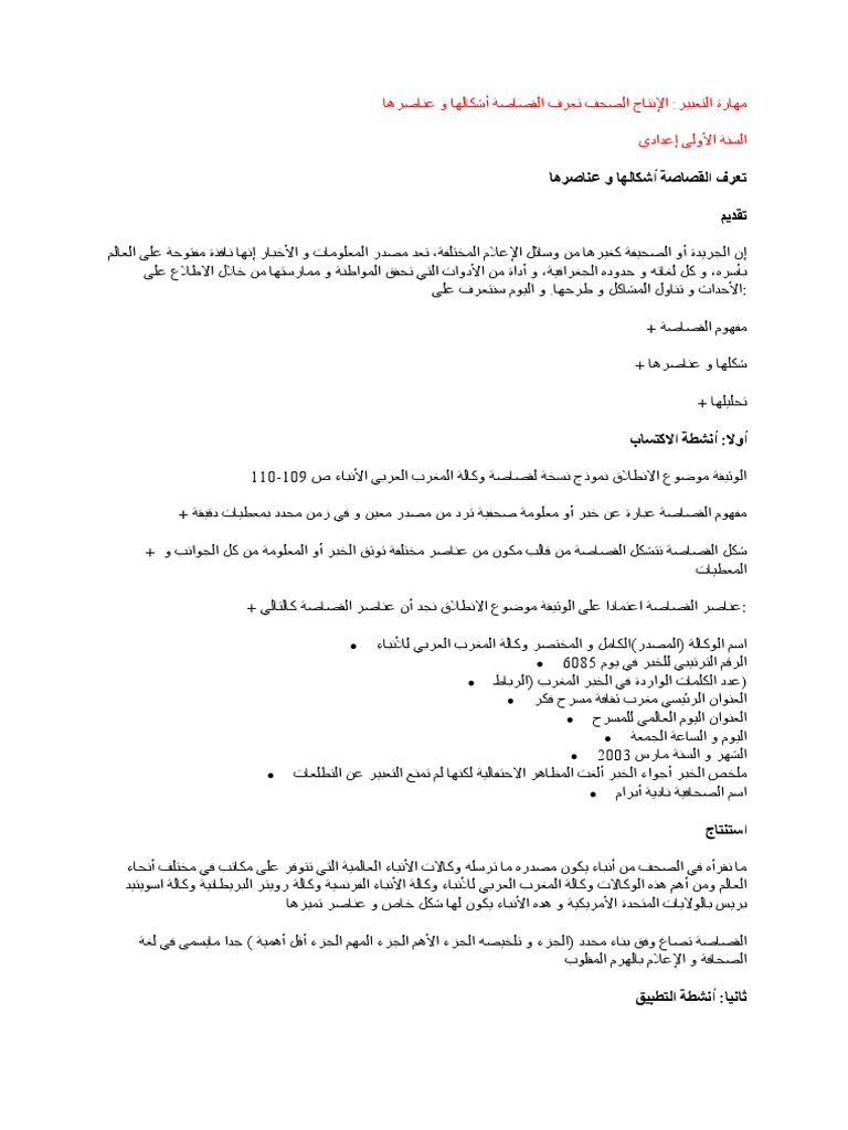 التعبير والانشاء الاولى اعدادي مهارة الانتاج الصحفي تعريف القصاصة شكلها وعناصرها مدونة