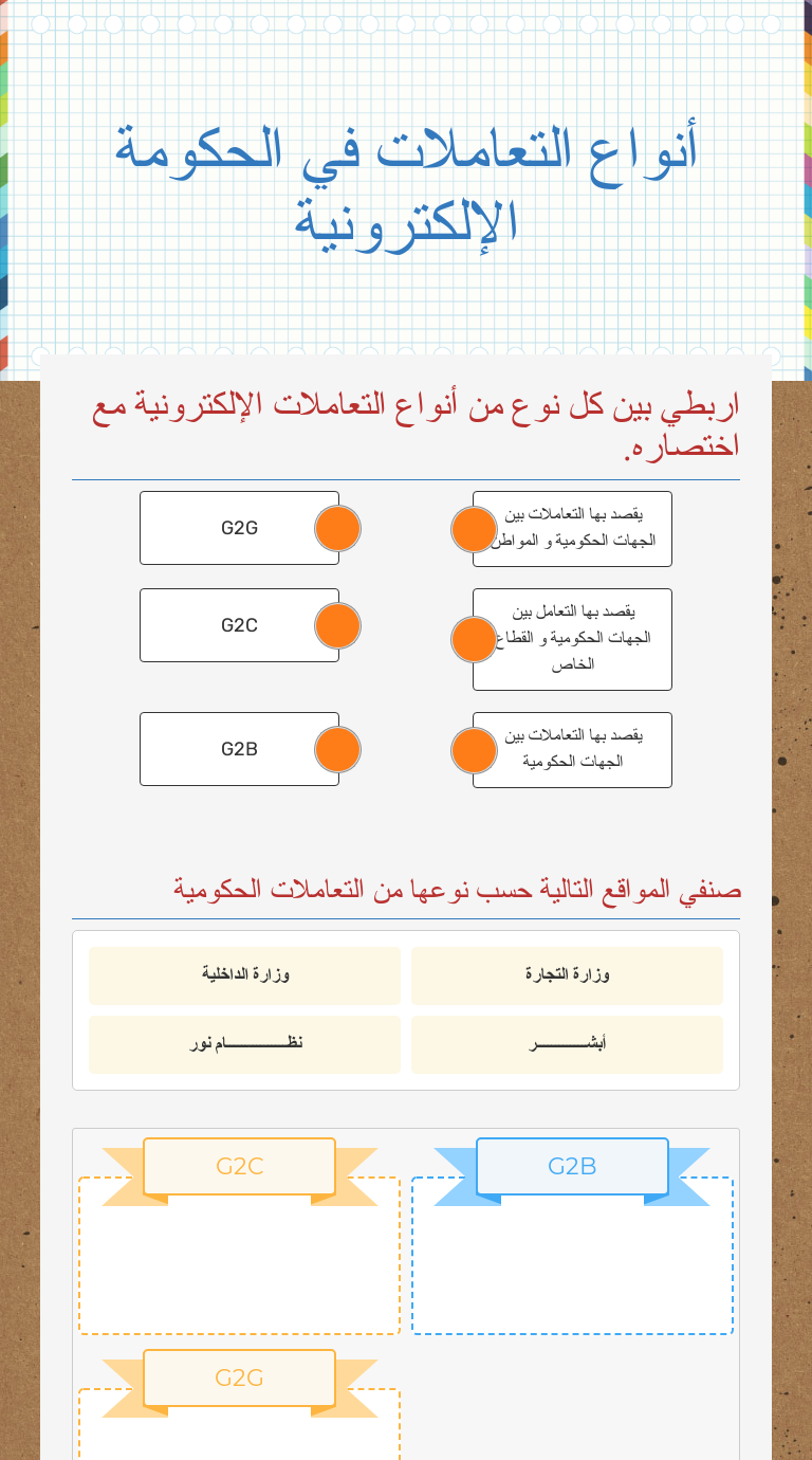 أنواع التعاملات في الحكومة الإلكترونية Interactive Worksheet By Han H Wizer Me