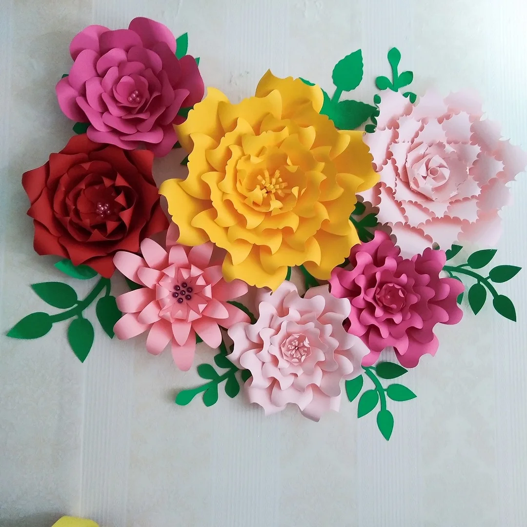 ورق زينة على شكل ورود ضخم 2018 مكون من 7 قطع أوراق شجر 10 قطعة بألوان وأنماط مختلفة لتزيين حفلات الزفاف Paper Flowers Giant Paper Flowersflower Backdrop Aliexpress
