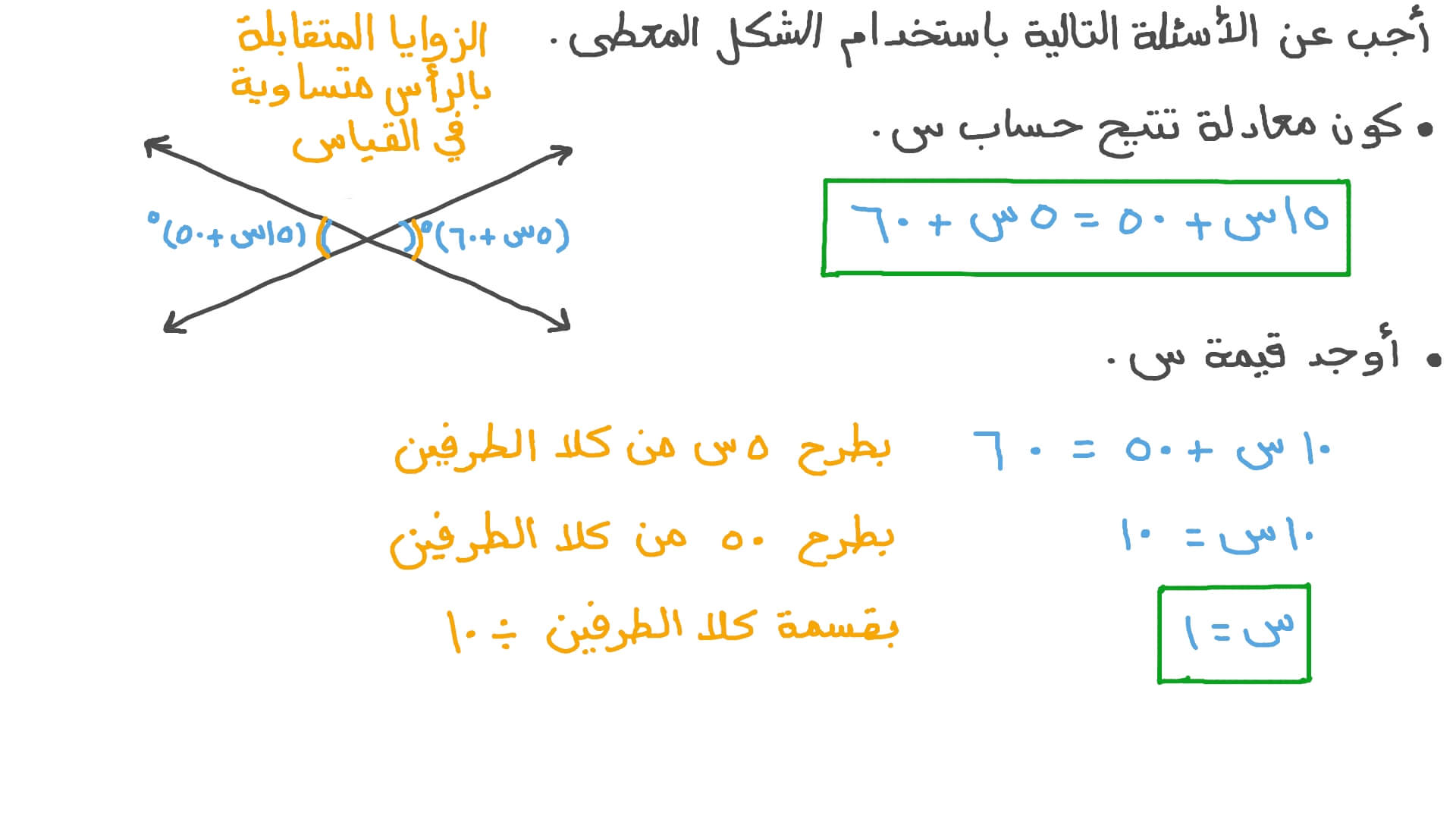 فيديو السؤال حل المسائل التي تتضمن زوايا متقابلة بالرأس