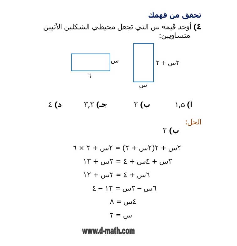 اوجد قيمة س التي تجعل محيطي الشكلين متساويين