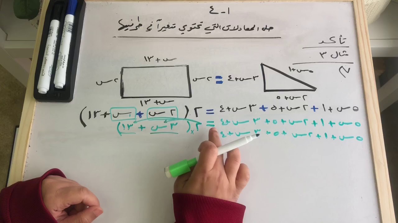 أوجد قيمة س التي تجعل محيطي الشكلين الآتيين متساويين Seen Xsaad حل المعادلات التي تحتوي متغيرا في طرفيها رياضيات الفصل الأول ثالث متوسط المنهج السعودي