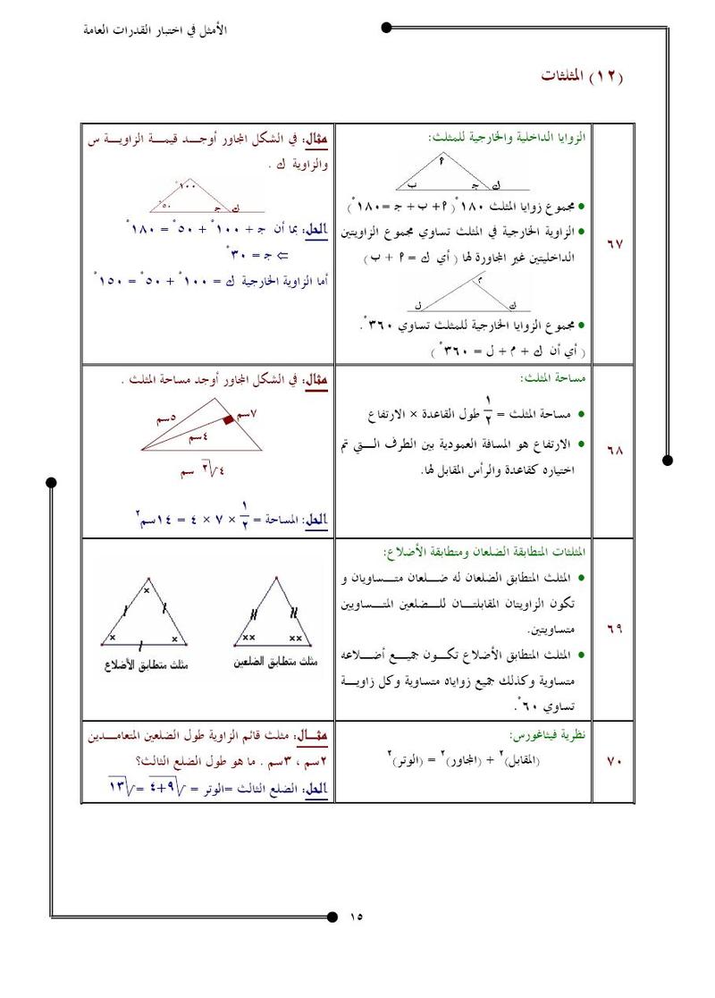 مفاتيح الحلول لمسائل القدرات في الرياضيات