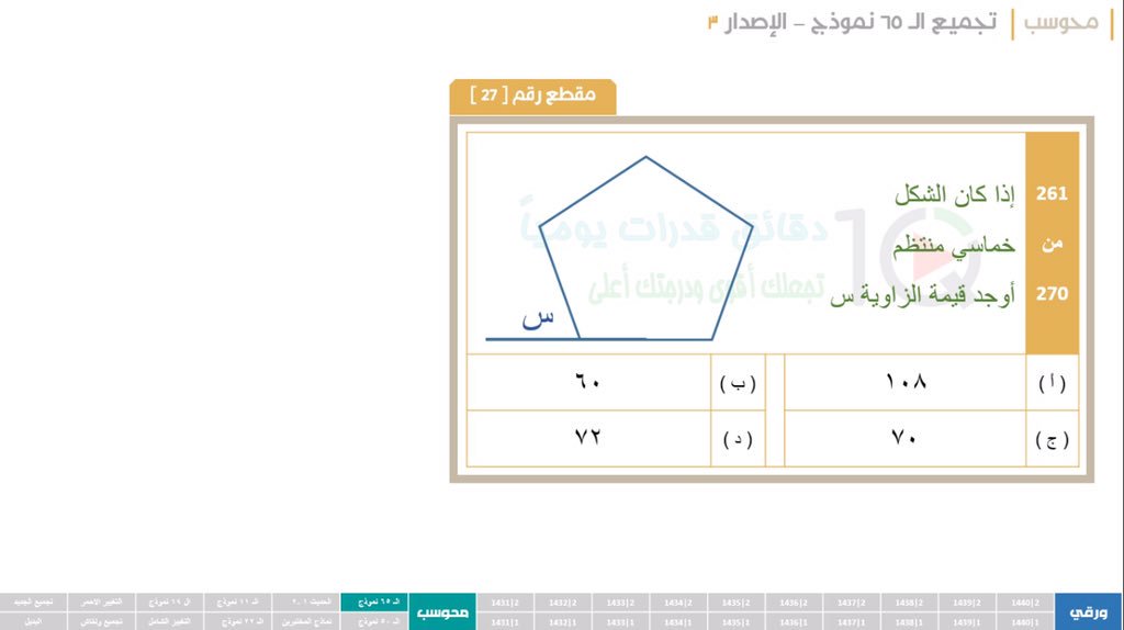 قناة 10 دقائق قدرات On Twitter من الصورة إذا كان الشكل خماسي منتظم أوجد قيمة الزاوية س أ ١٠٨ ب ٦٠ ج ٧٠ د ٧٢ للحل