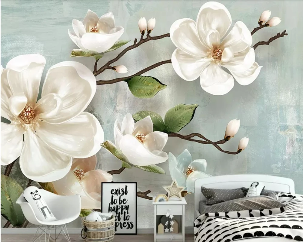 ورق حائط عصري منقوش على شكل زهرة ماغنوليا ثلاثية الأبعاد من Papel De Parede3d ورق حائط لغرفة المعيشة في غرفة النوم Wll ديكور منزلي مقهى جدارية مخصصة خلفيات Aliexpress