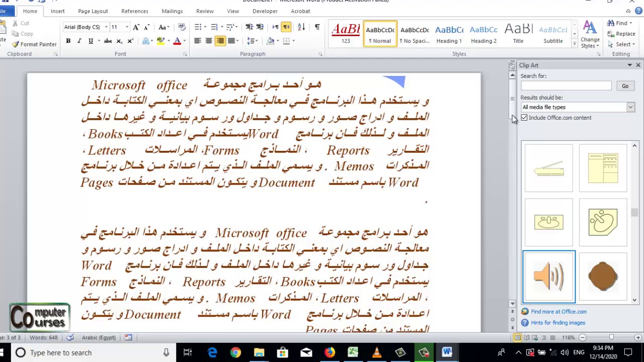 إدراج قصاصة فنية Clip Art داخل مستند Word 2010 الجزء الاول Youtube