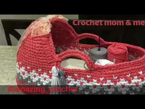 سلة بيبي كروشيه سرير بخيط الكليم او التيشرت المرحلة الثانيةcrochet Basket Youtube