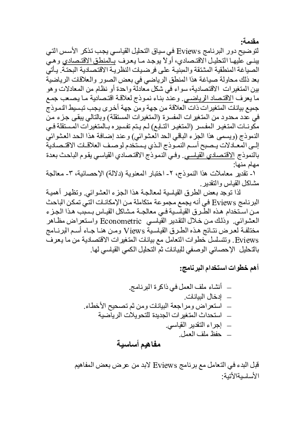 Pdf ﻣﻘﺪﻣﺔ ﻟﺘﻮﺿﻴ ﺢ دو ر اﻟﺒﺮﻧﺎﻣ ﺞ Eviewsﻓ ﻲ ﺳﻴﺎ ق اﻟﺘﺤﻠﻴ ﻞ اﻟﻘﻴﺎ ﺳ ﻲ ﻳ ﺠ ﺐ ﺗ ﺬآ ﺮ اﻷ ﺳ ﺲ اﻟ ﺘ ﻲ Nacerd