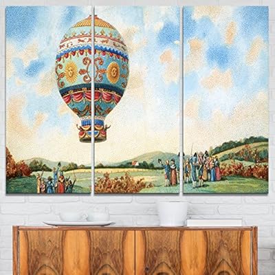 Designart Mt7507 3p بالهواء الساخن بالونات على شكل رسم توضيحي رقمية لوحة فنية جدارية فنية من معدن لامع مقاس 36 سم X 71 سم لون أزرق Amazon Ae