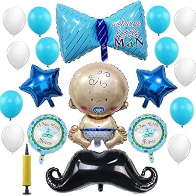 20 عبوة من بالونات بيبي بوي مجموعة ديكورات حفلات الترحيب بالرضع والأطفال الصغار لطيفة على شكل ربطة عنق لطيفة لطيفة على الشارب الصغير والنجمة الزرقاء والأولاد لوازم أعياد الميلاد Amazon Ae