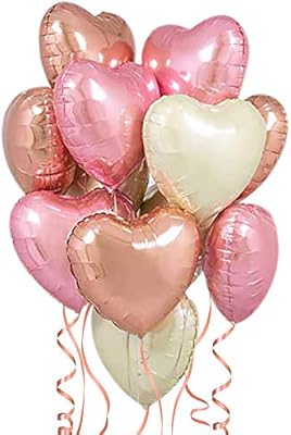 بالونات روز جولد وردي وأبيض عبوة من 12 بالونة على شكل قلب من رقاقات معدنية ديكورات عيد الحب بالونات لأزواج حفلات عيد الميلاد ديكورات حمام الأطفال Amazon Ae