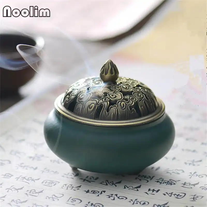 السيراميك رائعة لفائف البخور الموقد مع الجوف النحاس غطاء المنزل الشاي منزل ديكور العطر مبخرة بخور ومباخر Aliexpress