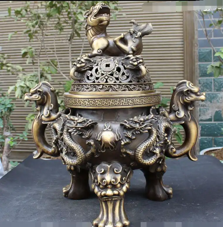 Scy 007466 20 سلالة صينية قصر برونز نقي التنين الأسد البخور الشعلات المبخرة تمثال Statue Lion Statue Dragonstatue Bronze Aliexpress
