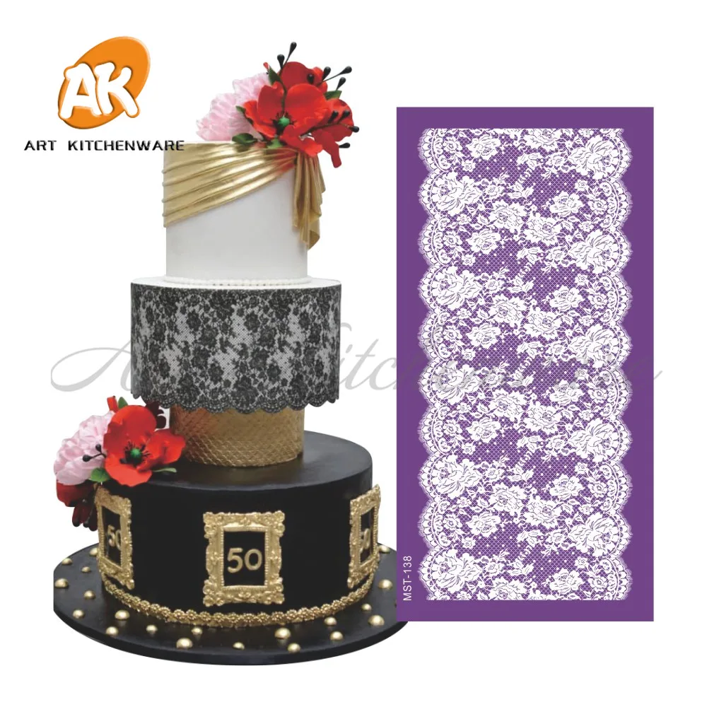 الزهور شبكة الإستنسل الدانتيل كعكة الإستنسل كعكة الزفاف تزيين أدوات لينة النسيج الإستنسل ل فندان قالب الكعكة مخبز في قوالب الكعك من المنزل والحديقة على Promo Unohama Club Store