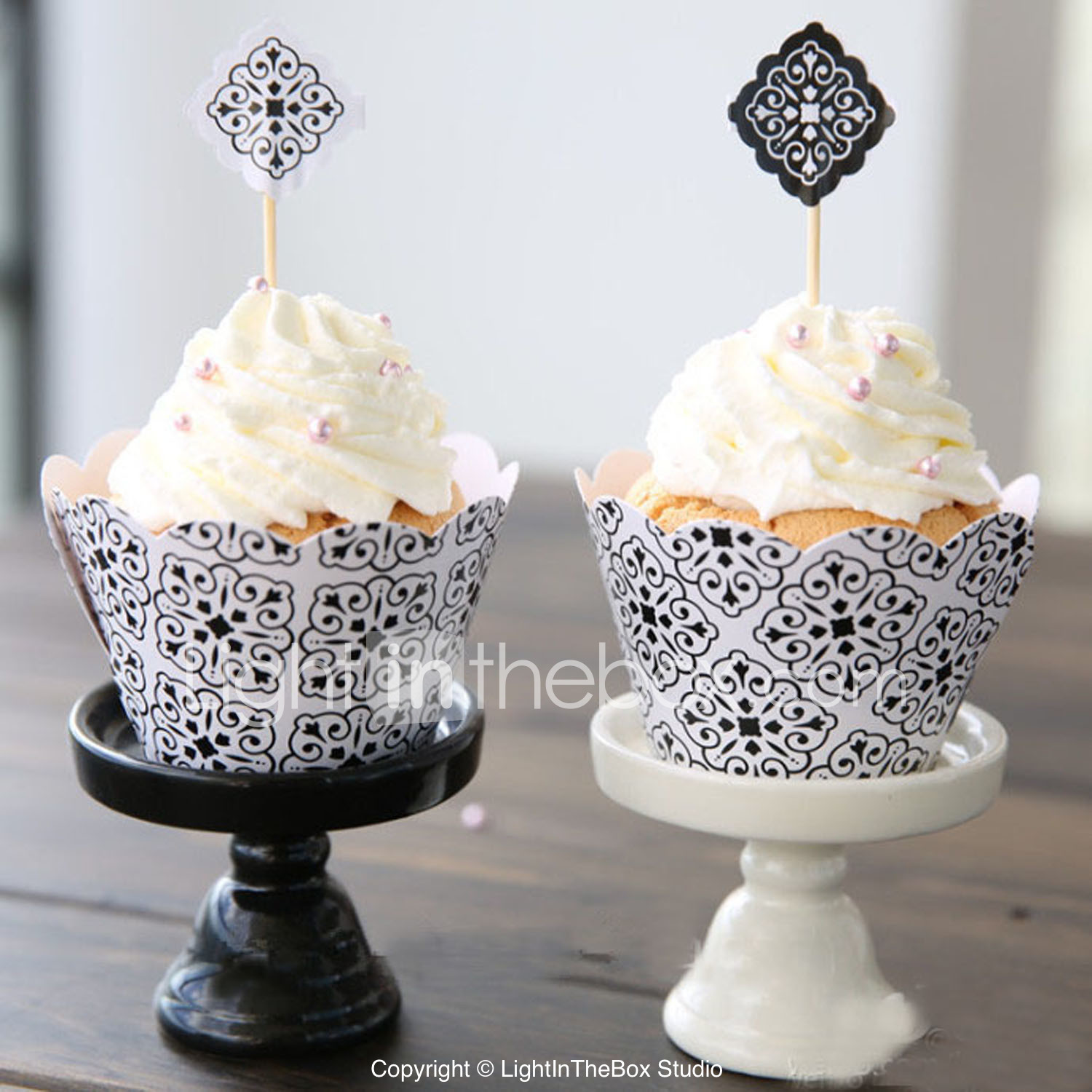 الأسود والأبيض ورقة ورقة كب كيك مجموعة من 12 بما في ذلك 12 و 12 ملصقات باكر 946826 2021 13 49